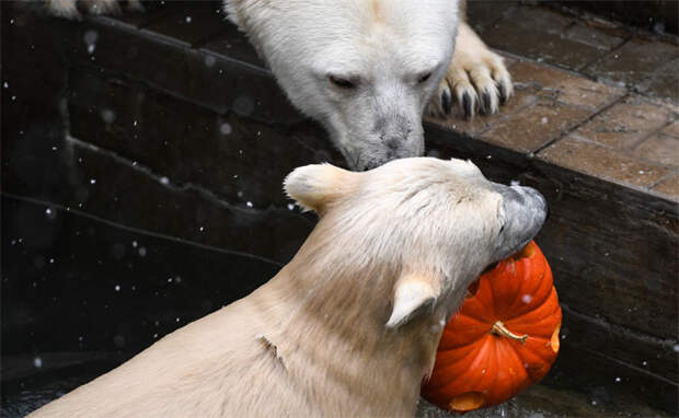 Первый снег вызвал бурную реакцию у белых медведей в Новосибирском зоопарке, где живут целых четыре полярных хищника – Кай, Герда, Норди и Шайна.